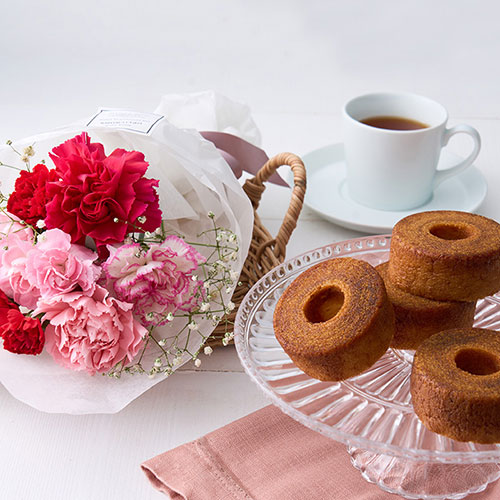 【母の日】カーネーションブーケ&焦がしキャラメルがしみ込んだバーム 4個 HBFCB+FMP-01C