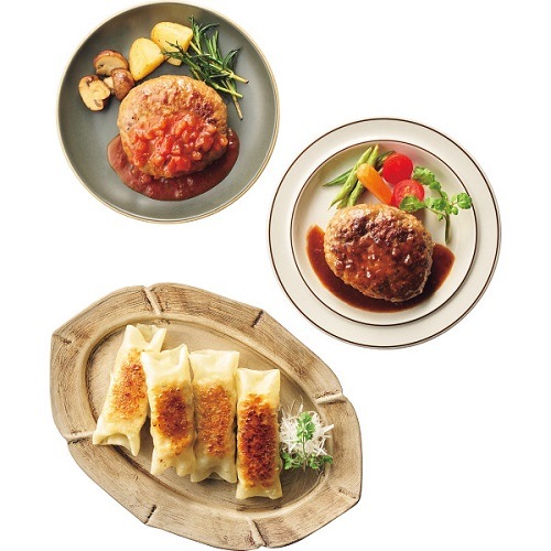 | 内容量 | 直火焼ローストビーフ160g×1(グレービーソース付)、ハンバーグ(牛肉・豚肉使用)130g×2、洋風デミグラスソース40g×2、4種のチーズ入りハンバーグ(牛肉・豚肉使用)130g×2、トマトイタリアンソース40g×2、豚肉の味噌煮込み450g×1、豚ひれ肉のローストポーク360g×1、国産鶏肉使用つくね串210g(6本)×1、黒酢たれ肉だんご300g×1、瀬戸内六穀豚使用棒餃子480g(12本)×1、ジャーマンフランク186g×1、ライスバーガー(牛カルビ)260g(2個)×1、ライスバーガー(豚生姜)260g(2個)×1、ベーコンたっぷり4種のチーズピザ259g×1 |